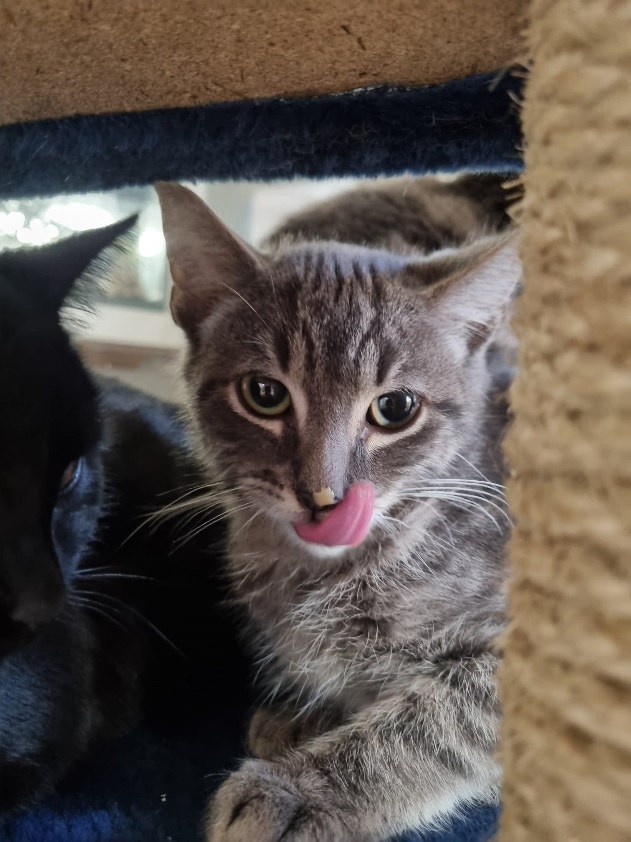 Mändu ist am Anfang sehr reserviert und meldet gerne mit einem Fauchen, wenn ihm etwas nicht in den Kram passt. Trotzdem findet er alles spannend, was sich bewegt. Sobald die Neugierigkeit überhandnimmt, spielt er gerne und ausdauernd. Mändu kneift aktuell sein Auge zusammen, wir sind an tierärztlichen Abklärungen und an der Behandlung.